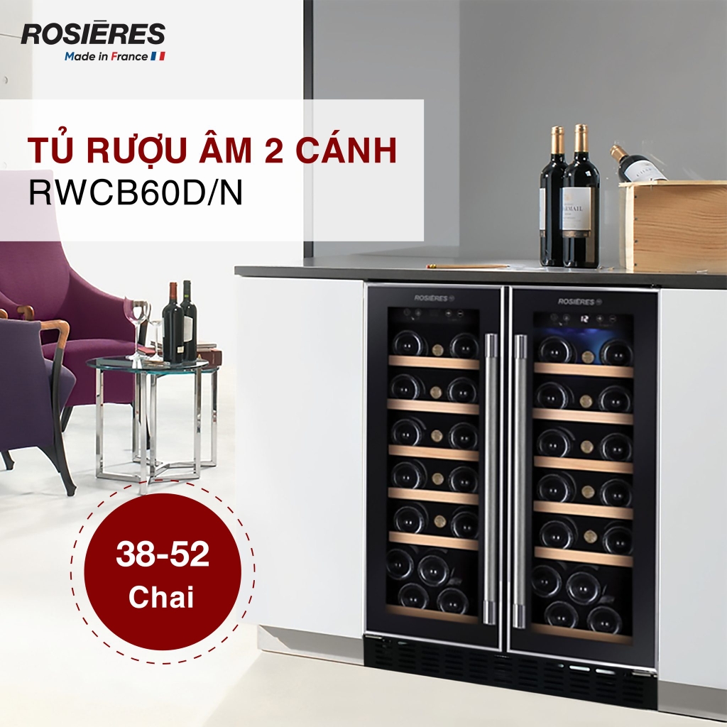 Tủ rượu 2 cánh âm tủ Rosieres RWCB60D/N sẽ giúp bạn bảo quản những chai rượu vang quý một cách tốt nhất, giữ trọn hương vị vốn có và góp phần tô điểm thêm không gian nội thất của gia đình bạn thêm sang trọng, thời thượng.